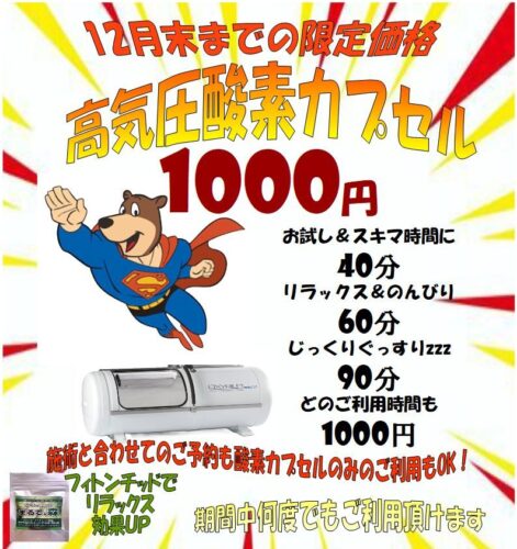 2025年12月末まで酸素カプセルキャンペーンを行います!